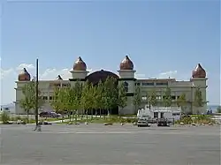 The first Saltair, completed in 1893, was jointly owned by a corporation associated with the Church of Jesus Christ of Latter-day Saints and Salt Lake & Los Angeles Railway (later renamed as the Salt Lake, Garfield, and Western Railway; not to be confused with the Los Angeles and Salt Lake Railroad), which was constructed for the express purpose of serving the resort.[1] Saltair was not the first resort built on the shores of the Great Salt Lake, but was the most successful ever built. A stunning example of early 20th century Moorish Revival architecture,[2] the resort was designed by well-known Utah architect Richard K.A. Kletting and rested on over 2,000 posts and pilings, many of which remain and still are visible over 110 years later.[3]