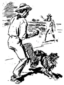Saltbush Bill is droving his sheep towards Castlereagh and Stingy Smith, the owner of Hard Times Hill station is worried that Bill's sheep will ruin his run. He chances on a travelling tramp, and finding out the man is a fighter, arranges for him to get Bill into a fight and tells him it's "a five-pound job if you belt him well -- do anything short of kill". When Bill arrives at the station, the tramp kicks his dog, starts a fight and beats Bill senseless. Bill has to recuperate for a week from his injuries, after which he and his sheep move on. It is only later that Stingy Smith comes to realise that he has been duped, and that Bill had arranged it all.[1]