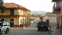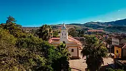 Samaipata or Samaypata[2] (Quechua samay to rest, pata elevated place / above, at the top / edge, bank (of a river), shore)[3][4] is a small town in the Florida Province of the Santa Cruz Department in Bolivia. It has a subtropical climate and an altitude of 1600–1800 m. It lies about 120 kilometers to the southwest of the city of Santa Cruz de la Sierra in the foothills of the Andes on the way to Sucre. It is a popular resort for the inhabitants of Santa Cruz due to its cool climate. As such, there is a regular bus and taxi service to Santa Cruz. The town is small with numerous colonial buildings and narrow cobbled streets. It is located near several tourist attractions such as El Fuerte de Samaipata, the Amboro National Park, El Codo de los Andes, Cuevas waterfalls, vineyards, rapids and lagoons, as well as well-preserved colonial towns such as Vallegrande, Pampagrande, Postrervalle, Santiago del Valle, Pucará, and others. It is also the first stop in the several tourist trails to Sucre, Potosi, and the Che Guevara route.