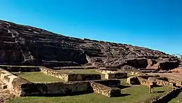 The valley was originally populated by people of the Chane culture dedicated to agriculture, hunting and gathering. The Chanes are famous for their densely populated villages, their ceramics and graphic designs, and most importantly the construction of the temple at El Fuerte de Samaipata.[5] They cultivated mainly corn and peanuts and were rather peaceful. There are several Chane burial sites all through the valleys and pampas of Santa Cruz between the Siberia mountain ridge and the Guapay River.
