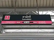 Samakkhi station (Thai: สถานีสามัคคี) is a Bangkok MRT station on the Pink Line. The station is located on Tiwanon Road at the junction between Tiwanon and Samakkhi roads in Mueang Nonthaburi district, Nonthaburi province.[1] The station has four exits.[2] It opened on 21 November 2023 as part of trial operations on the entire Pink Line.[3][4]