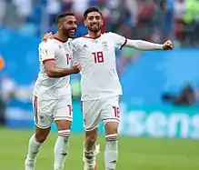 On 13 May 2018, Ghoddos was named in Queiroz's preliminary squad for the 2018 FIFA World Cup.[67] In an interview with Olof Lundh in May 2018, Ghoddos stated that if the Swedish federation had contacted him earlier, it's very likely for him to have chosen to represent Sweden, though he does not regret his decision to play for Iran.[68] Club teammate Emil Krafth later added that Ghoddos told him he wanted to play for Sweden.[69][70] He was named in Iran's final 23-man squad for the 2018 World Cup on 4 June 2018.[1] Ghoddos made his World Cup debut against Morocco on 15 June 2018, winning a free kick that led to a goal for Iran’s first World Cup win in twenty years.[71] He was used as a substitute in all three World Cup matches against Morocco, Spain and Portugal.[72] After the World Cup in November 2018, Ghoddos faced conscription issues in Iran.[73]