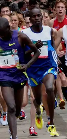 He opened 2012 with another win at the World's Best 10K, completing the course in 28:02 minutes.[16] He attempted a marathon debut at the Rotterdam Marathon (where he has acted as pacemaker before), but did not finish as he dropped out after 30 km.[17] In October, he was placed fourth at the 2012 Chicago Marathon with a time of 2:05:54 hours.[18] He won his third straight World's Best 10K title at the beginning of 2013.[19] A return to the Rotterdam Marathon saw him complete the distance, although his time of 2:07:22 hours was slower than his last.