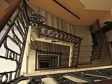 Sampaio Moreira was built with reinforced concrete, a structure that uses frames made from steel bars. It has 5,360 km2 (2,070 sq mi) of built area and a land area of 596 km2 (230 sq mi).[11] With an eclectic architectural style, it has typical Louis XVI-style decoration, which mixes rococo and neoclassicism. Its structure is rich in detail and the façade changes from floor to floor. It underwent a major structural renovation in 1990, but several features have been preserved, such as the Carrara marble staircases and the riga pine window frames, as well as the pergola of Greek columns on the roof.[12]