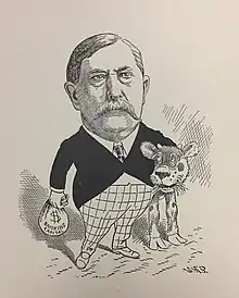 In 1868, at the age of nineteen, "Burk" Burnett, as he was known,[3] purchased one hundred head of cattle which were branded '6666,' from Frank Crowley.[4] During the Panic of 1873, he drove 1,100 steers to Wichita, Kansas and sold them for US$10,000 in 1874, thus making a fortune for the time.[1] Later that year, he purchased 1,300 more cattle and drove them along the Chisholm Trail to the open range land by the Little Wichita River. He purchased land near Wichita Falls, Texas, before the town was built. Due to the droughts of the 1880s, he moved his cattle to the Big Pasture in southwestern Oklahoma. He rented 300,000 acres of land, where his 10,000 head of cattle grazed.[1] Meanwhile, his son Thomas worked as a cowhand on the Big Pasture.[6]