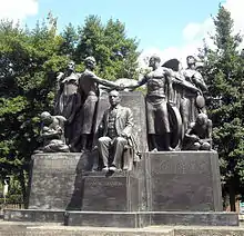 Gompers is the subject of statuary in several major American cities. A bronze monument honoring Gompers by the sculptor Robert Aitken is in Gompers Square on Massachusetts Avenue in Washington, D.C. On September 3, 2007, a life-size statue of Gompers was unveiled at Gompers Park, named after the labor leader in 1929, on the northwest side of Chicago. This is the first statue of a labor leader in Chicago. Local unions throughout Chicago donated their time and money to build the monument.[53] A U.S. Navy destroyer tender was named for Gompers. The Samuel Gompers Houses, a public housing development on the Lower East Side of New York, is named in his honor.[54][55] There are schools named for Gompers in Philadelphia, Madison, Wisconsin, San Diego, Phoenix, Arizona and The Bronx, New York, a school in Chicago renamed to Jesse Owens Community Elementary, and a school in Detroit.[56][57][58]