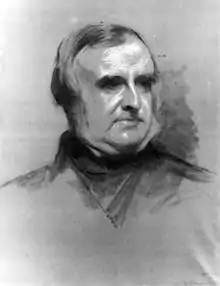 There are by him in the National Portrait Gallery portraits in oil of Charles Babbage and Sir Thomas Bourchier, R.N., and an unfinished head of Thackeray, as well as chalk drawings of Sir Frederick Pollock, bart., and Sir Charles Wheatstone, and an unfinished sketch of Matthew James Higgins ('Jacob Omnium'). The Scottish National Portrait Gallery has a head in crayons of Thomas Carlyle. His portrait of Dr. Whewell is in Trinity College, Cambridge, and one of Thackeray is in the Reform Club, London.[1]