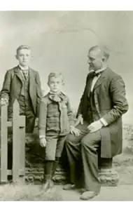 Jones married his first wife, Alma B Curtis, and had three children; sons Percy Curtis Jones (born 1878) and Paul Hugh Jones (born 1884), and a daughter, Eva Bell Jones (born 1879).[3][20] His daughter died in December 1881, at the age of 2, and Alma died Christmas Eve in 1885. Jones remarried Helen Beach, daughter of a prominent Toledo family, in 1892, and relocated to her hometown from Lima, Ohio shortly thereafter.[21] The couple had one child together, Mason Beach Jones (born 1897).[22][23]