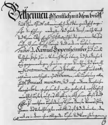 Oppenheimer was buried in the Rossauer Cemetery, the oldest Jewish cemetery in Vienna (Seegasse 9). Stones in the cemetery were buried during WWII for protection. Many were recovered and the cemetery was restored in the 1980s. One half of Samuel Oppenheimer's tombstone as well as the lower part of the second half were recovered during excavations in the cemetery in 2008 and was restored to its original location,[3] as were the tombstones of several of his descendants. A photograph taken before the war reveals the elaborate inscriptions on his tombstone.