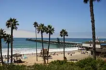 San Clemente (/ˌsæn kləˈmɛnti/; Spanish for "St. Clement"[6] Spanish: [saŋ kleˈmente])[7]) is a city in Orange County, California, United States. Located in the Orange Coast region of the South Coast of California, San Clemente's population was 64,293 in at the 2020 census.[5] Situated roughly midway between Los Angeles and San Diego, San Clemente is a popular tourist destination in Southern California, known for its beaches, Spanish Colonial Revival architecture, and hospitality industry. San Clemente's city slogan is "Spanish Village by the Sea".[8]