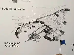 ![]() Reconstruction of San Rocco Battery by Stephen C. Spiteri at the Fortifications Interpretation Centre | |