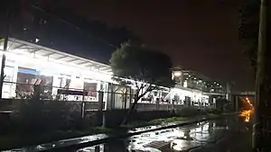 Sanayi was originally a railway station on the Bornova suburban line known as 2. Sanayi railway station (Turkish: 2. Sanayi istasyonu). The station was built by the Smyrna Cassaba Railway (SCP) and opened on 25 October 1866.[1] Trains from Basmane station to Bornova stopped at Sanayi. Since the Bornova Branch was never extended, the station and the line remained a suburban railway. The Turkish State Railways (TCDD) took over the SCP in 1934 and continued operating commuter service on the railway. TCDD sold the railway to the İzmir Municipality in 1994 and Sanayi, along with the railway, was closed down. The Municipality began construction of the İzmir Metro in 1995 and Sanayi station was demolished. The new station was built on the existing right-of-way shortly after. Construction was completed in 1999 and the station was inaugurated on 22 May 2000, along with the metro line from Bornova to Üçyol.[2]