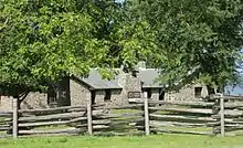 Park facilities include a 2,000-foot (610 m) sand beach, canoe and kayak rentals, a food concession, picnic tables with cooking grills, volleyball courts, horseshoes, and swings.[1] The most prominent built feature of the park is a large stone bathhouse. It was built by the Civilian Conservation Corps (CCC) in 1933–35.[3]