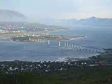 Sandnessund Bridge (Norwegian: Sandnessundbrua) is a cantilever road bridge that crosses the Sandnes Strait between the islands of Tromsøya and Kvaløya in Tromsø Municipality in Troms og Finnmark county, Norway. The Tromsø Bridge, the Tromsøysund Tunnel, and this bridge are the three road connections into the city of Tromsø on the island of Tromsøya.