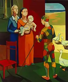 In 2005, Nocentini was awarded the $10,000 Sir John Sulman Prize for his painting My Son Has Two Mothers.[2][4] The work was exhibited at the Art Gallery of New South Wales.[5] The inspiration for it came from the artist's "assisting two friends to conceive a child"; Nocentini has shown himself as a harlequin, a reference to Picasso, whose influence is apparent in the work.[1]