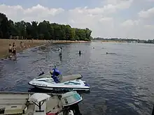 Sanford Lake Park is located on the west side of the former lake near the dam. This park, maintained by Midland County, had boat ramps, a sandy beach area with volleyball and swimming, pull-up parking for boats and jet-skis, picnic pavilions, playgrounds, and a seasonal concession stand. Access was by car for an entry fee or by boat. As of May 2023, the park remained closed for construction.[2]