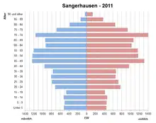 ** Population of Sangerhausen town in brackets
