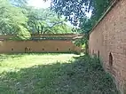 The citadel is situated inside the enclosed area of the inner brick wall. Its area is around 600 x 600 feet. Its walls are 14 to 20 feet high.[lower-alpha 1] There are 4 guarding posts (pillars) in the 4 corners of 4 directions. The southern passageway door leads to the Govindajee Temple of the Kangla.[14][15] It is constructed by using well-burnt bricks. It houses many holy sites, including the coronation site of Pakhangba.[lower-alpha 2] It has three main entrance gates. Two entrance gates are on the western side and one entrance gate is on the southern side. The entrance gate situated on the left end of the western face lies directly opposite to the Royal Coronation Hall. The entrance gate situated at the right end of the same wall lies facing the Court Room (Darbar Hall). The southern entrance gate is well connected with a passageway leading to the Shree Govindajee Temple of the Kangla.[16][17][18]