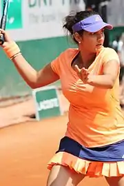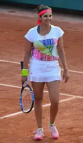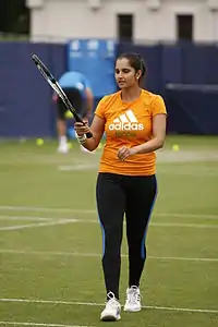 Sania Mirza (ˈsaːnijaː ˈmirzaː; born 15 November 1986) is an Indian former professional tennis player. A former doubles world No. 1, she won six major titles – three in women's doubles and three in mixed doubles.[4][5] From 2003 until her retirement from singles in 2013, she was ranked by the Women's Tennis Association as the No. 1 Indian in singles.[6][7] Throughout her career, Mirza has established herself as one of the most known, highest-paid, and influential athletes in India.[8][9][10]