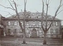 - Sankt Georgen Castle, later the Ordensschloss St. George: (Today part of the St. Georgen-Bayreuth Correctional Facility): The first castle only existed from 1701 to 1724. Its architect was Antonio della Porta and construction management was in the hands of the "Commissarius" Johann Cadusch from Graubünden.[31] After falling into disrepair, it was demolished. The rapid construction and the extensive use of wood rather than more solid stone constructions were probably responsible for the buildings short life. The successor building was started immediately after the previous one had been razed and was completed in 1727. The architect and site manager was Johann David Räntz the Elder, a son of Elias Räntz.[32] After Bayreuth became part of Prussia in 1792 the castle was used as a warehouse and granary. In the 19th century and during the First World War, the building served as a reserve hospital.[31][33] Today the castle is part of the St. Georgen-Bayreuth prison.