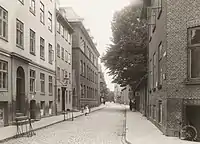A new building for the school was inaugurated at Larslejsstræde 5 in 1899. The complex also comprised a new home for Skt. Petri kirkes, Thymes og P.s plejestiftelse, a home for elderly indigent, German expatriates. It had been established in the beginning of the 19th century through a merger of three independent institutions: Thymes Stiftelse ('Thyme's Foundation'), founded by Winand Thyme in 1775; Pelts Stiftelse ('Pelt's Foundation'), founded by Abraham Pelt in 1779; and a third one operated by the church.[2] Most of the residents were German expatriate women. In 1997, the building was sold to the school, which needed more space for its increasing number of students.[3]