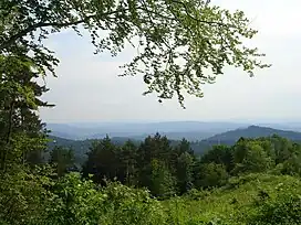 The Sanok-Turka mountain range stretches on an area of 930 km² to the north of the Bieszczady Mountains, and to the south of the Przemyskie Upland, between the valleys of the middle San and Stryi River. They extend after the river Stryi by the Beskidy Brzeżne. The northern boundary is made by the rivers Wiar, Łomna, Stupnica, Leszczawka, Lachawka and Tyrawski, the western valley of the river San.[1] Sometimes the territories to the East and South of the river Wiar, (like the Sucha Obycz Massif), and the east of the Lachawka river valley to the valley of the river San (Wysokiego mountain range) are added to Sanocko-Turczańskie mountains (there are also different variations of the northern border). The southern border is generally carried through the ridges of the Otryt mountain range and through the San where the Tyrawski river joins as a tributary, although sometimes the Otryt mountain range is linked with the Sanocko-Turczańskie mountains, then the southern border is the Upper San river.[2]