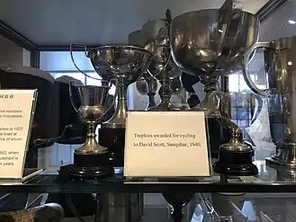 A number of cycling trophies won by Dave Scott are on display in the Sanquhar Tollbooth Museum.