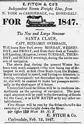 - 1 2 "E. Fitch & Co's Independent Steam Freight Line". Carbondale Democrat. Carbondale, PA. April 17, 1847. p. 3 – via Newspapers.com.