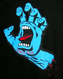 The "Screaming Hand", designed by Jim Phillips Sr. in 1985, is the main graphic associated with the Santa Cruz brand.[7] The hand image has become a skateboarding icon and is recognized widely throughout the skateboarding community; in 2015–16, its 30th anniversary was celebrated with a touring exhibition.[8] As of February 2013, Phillips's son Jimbo also designs artwork for the Santa Cruz brand.