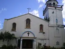 In 1613, Padre Geronimo Vásquez built the first church on the spot where the couple found the image of the Virgin. Thus, San Miguel de Caboan became Santa María de los Ángeles, in short — Santa María. The Chinese uprising in 1639 destroyed the church. Parishioners rebuilt it in 1669, before the earthquake of 1880 leveled it again to the ground. Padre Leopoldo Arellano raised it once more in 1891. The facade of the church is still surviving and is now known as the Nuestra Señora de los Angeles Parish Church. The church was again partly destroyed during the earthquake of August 20, 1937, but was not reconstructed until after the Liberation in 1945.