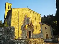 The parish church has existed since the eleventh century.[1] It was destroyed in Allied aerial bombardments in 1944.[2] The church and bell tower were reconstructed by Sylvester Bardazzi on the basis of photographs taken before the bombing, using materials recovered from the ruins; the building was reopened in 1958.[3]