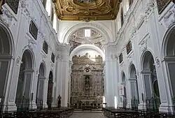 The interior was heavily encrusted with stucco decorations (1701) by Antonio Guidetti, and the altar is made of polychrome marbles. The counterfacade has an organ from 1699. The ceiling was decorated with canvases by Nicola Malinconico, also the author of the paintings depicting the saints, as well as the fresco in the counter-facade. In the second chapel on right are two saints (1736) painted by Domenico Antonio Vaccaro; in the presbytery and transepts are frescoes and canvases by Francesco Solimena.