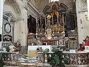 The sculptures in marble are by Bartolomeo Granucci and Nicola Mazzone, and stucco are by Giulio Mencaglia and Bartolomeo Ghetti, who also carved the main altar using a design by Guglielmelli. The pulpit was designed by Giovanni Conte, also called il Nano.