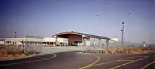 The Santa Teresa Port of Entry is a border crossing between Santa Teresa, New Mexico and San Jerónimo, Chihuahua. It was built in 1992 to relieve pressure from the busy El Paso BOTA Port of Entry, a short distance to the east, and started operating on January 12, 1993. General Services Administration is currently increasing the capacity of the port of entry, taking advantage of the available land.[1] The crossing is open daily from 6am until midnight. The station has three commercial vehicle lanes and four passenger lanes.[2] The port of entry is located forty-two miles south of Las Cruces, New Mexico, and around twenty minutes from downtown El Paso, Texas. It was used as a filming location in the Better Call Saul episode "Fifi."[3][4]
