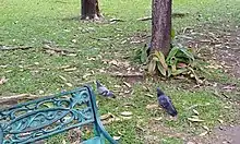 Over 30 species of birds have been recorded in the park since its creation. Birds most often seen or heard there: feral pigeon, spotted dove, zebra dove, plaintive cuckoo, common koel, coppersmith barbet, Asian palm-swift, streak-eared bulbul, black-naped oriole, large-billed crow, oriental magpie-robin, pied fantail, black-collared starling, Asian pied starling, common myna, white-vented myna, olive-backed sunbird, scarlet-backed flowerpecker, Eurasian tree sparrow. Common winter (October–March) visitors: barn swallow, red-breasted flycatcher, inornate warbler. Species which are seen there less often (but all year round): striated heron, Javan pond-heron, little egret, painted stork, house swift, common iora, common tailorbird, yellow-vented bulbul, red-whiskered bulbul, house sparrow. Less common winter visitors: Chinese pond-heron, ashy drongo, brown shrike, Asian paradise-flycatcher. In the wasteland on which the park was later constructed, white-breasted waterhen, black-capped kingfisher, and verditer flycatcher were also recorded. Much more unusually for central Bangkok, orange-headed thrush and laced woodpecker have been recorded in a quieter condominium garden 50 m from the park.