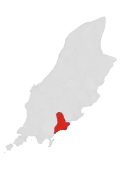It is located in the south-east of the island (part of the traditional South Side division) in the sheading of Middle.