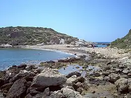 Saplı Islet (Turkish: Saplı Ada, meaning "Island with a handle", also called Boynuince Islet) is a Mediterranean tombolo of Turkey. The island is at the Yenikaş coast which is located 4 kilometres (2.5 mi) west of Aydıncık ilçe (district) of Mersin Province. At 36°07′48″N 33°17′41″E / 36.13000°N 33.29472°E it forms the west wall of the bay named Soğuksu. Its distance to Mersin is about 177 kilometres (110 mi)