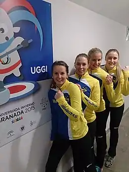 ![]() Anna Huhta, Sofia Mabergs, Cecilia Östlund, and McManus (far right) at the 2015 Winter Universiade | |