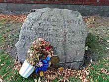 Sarah Bradlee Fulton (December 24, 1740, Dorchester - November 9, 1835, Medford)[1] was an active participant of the Revolutionary War on the American side.[2] A tablet stone was dedicated to her memory at the Salem Street Burying Ground in Medford, Massachusetts in 1900.[3]