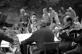 Chang played a recital at Carnegie Hall on April 7, 2007, accompanied by the British pianist Ashley Wass.[32] She continued to perform with the Los Angeles Philharmonic and Esa-Pekka Salonen and appear with the former at the Hollywood Bowl and Walt Disney Concert Hall throughout 2008.[33] On March 27 and 28, 2008, she played for San Antonio, Texas audiences at the Majestic Theater, a performance preceded by an appearance (to meet and inspire young as well as seasoned musicians at no charge) at Antonio Strad Violin in the same city.[34] From May 2009 to June 2010, she held recital tours across Europe, North America, and Asia with pianist Andrew von Oeyen; a July 2010 recording of the two was eventually released.[35] On February 12, 2010, she gave a recital at the Barbican Hall in London.[36] Chang made an appearance at the University of Southern California in March 2010, playing Max Bruch's Violin Concerto No. 1 in G minor, Op. 26. She performed at the Hollywood Bowl in August 2010.[37][38]
