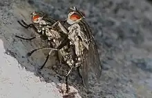 Sarcophaga barbata is a species from the genus Sarcophaga and the family of flesh fly, Sarcophagidae. It is most closely related to S. plinthopyga, S. securifera, and S. bullata of the same genus. The species was first discovered by Eugene Thomson in 1868.[1] S. barbata has also been found in the Middle East near carcasses, where the larvae can thrive.[2] S. barbata is also a prominent organism in scientific research and has been used to study L-3-glycerophosphate oxidation and location within the mitochondria .[3]