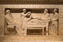 The Sarcophagus of the Satrap is an ancient Hellenistic marble funerary monument discovered at the Ayaa Necropolis in Sidon, present-day Lebanon, and is believed to originate from the Achaemenid Persian Empire period (the mid-5th century BCE). The reliefs are believed to depict a Persian Satrap, whose body is assumed to have inhabited the tomb.