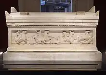 The Sarcophagus of the Satrap at the Istanbul Archaeology Museums, showing the hunt scene.