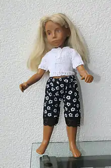 Sasha Morgenthaler (1893–1975) was a Swiss artist and dollmaker, best known for the "Sasha doll" produced in Germany and the United Kingdom beginning in the late 1960s. Popular with collectors, Sasha dolls are characterized by their individualism, their realistic expressions, their unique color, and the extreme attention to detail in the manufacture of the dolls as well as their clothes. It is said by Juliette Peers that: "Sasha dolls are renowned for possessing a solid intellectuality." Morgenthaler created face sculpts for her dolls with subtle expressions, not artificially exaggerated smiles: her concern was that children surviving the horrors of WWII would not relate to such happy dolls in times of terror. It was said of Morgenthaler herself, as a child, that "When she was sad, she did not like her dolls uncompromising smiles. Once she grabbed a nail file and scraped off her doll's false grin..." In her own words, "No grotesque caricature can awaken a child's true feelings. A piece of wood, barely carved, is far superior to a conventional doll with an exaggerated smile."[1]
