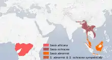 Sasia is a genus of birds in the woodpecker family Picidae, that are native to the Old World. They are very small, virtually tailless woodpeckers, with a crombec or nuthatch-like appearance and foraging habits. Their habitat is forest and secondary growth.[2]