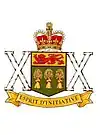 The Saskatchewan Dragoons is a Primary Reserve armoured regiment of the Canadian Army. The unit is based in Moose Jaw. Their primary job is to assist the Regular Force in meeting Canada's military commitments. Their training and equipment closely follow that of the Regular Force, which the Reserves are called upon to assist increasingly often. The Saskatchewan Dragoons are part of 3rd Canadian Division's 38 Canadian Brigade Group.[1][2]