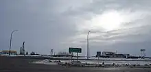 Inside Saskatoon's eastern city limits, Highway 5 connects with Highway 41 at the site of a small commercial area that, as of 2007, included the Sundown Drive-In, one of Canada's last operational drive-in movie theatres.[11] At Km 2.9, Highway 41 is traveling north east and crosses Llewellin Road, exiting Saskatoon's city limits. The Agra Road intersection is at Km 4.2. Continuing north east, Highway 41 meets with Bettken Road at 9.8 km. the Intersection with Hwy 27 is at Aberdeen. Alvena can be accessed at Km 40.1. One Arrow 95-1C Indian Reserve is north of the highway at Km 61.9. Travel continues north east arriving at the Highway 22 intersection at Km 78.0. Highway 312 is just north of this intersection meeting with Highway 22. Travel west along Highway 312 will traverse the South Saskatchewan River via the a three span bridge.[12] Travel continues on Highway 41 due east. The town of Wakaw and Wakaw Lake Regional Park are accessed via Highway 2. At Km 95.0, the Highway returns to its north east direction. The village of Reynaud is to the east of this mile point. AT Km 107.8, Highway 41 intersects with Highway 20. Yellow Creek is located at Km 117.8, travel on Highway 41 is due east at this juncture. In approximately 12 miles (19 km), the highway returns to its north east direction. Meskanaw is located at Km 129.6. Travel along Highway 41 is now due east. There is a curve at Km 138.1 when Highway 41 meets with Highway 776 which continues the due east direction. Highway 41 travels in a north east direction. At Km 148.5, Highway 41 intersects with Highway 368. Highway 3 and Highway 6, the CanAm Highway are traveling south and north as a concurrency when they intersect with Highway 41 south of the city of Melfort.[1]