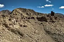 Saspol Caves (a.k.a. Gon-Nila-Phuk Cave Temples) are situated in the hills behind Saspol, Ladakh, India, which is about 76 km from the city centre of Leh. Paintings exist in five caves, two of them extensively damaged. One of the painted caves, that have been given a coat of lime wash and red paint in the exterior is the most visited and is considered as the main cave. The paintings of Anuttarayoga Tantra (also known as Yoganiruttaratantra) in the main cave are very rare for the period of execution. These caves are under the administration of Likir Monastery.