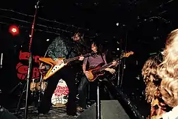 Burgess described the band as wanting to have the "speed and aggression of Black Flag" while having a "psychedelic, downtuned, horror infused atmosphere of Electric Wizard" noting that two groups were his favourite bands.[2] Burgess described them as "both equal bands, they had so much in common, but so much different, that I just wanted to explore that area."[2] James Monger of AllMusic described the band as "a high-octane blend of psych-blasted doom metal, grindhouse punk, and sleazy garage rock"[4] Later, the group began incorporating the glam rock influence of groups such as T-Rex, The Sweet, New York Dolls, and KISS.[10]