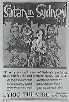 Satan in Sydney is a 1918 Australian melodrama from director Beaumont Smith. It was his first movie which was not about the rural family, the Hayseeds. It is considered a lost film.